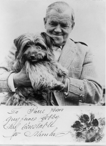 John Gray fue un jardinero que llegó a Edimburgo (Escocia) junto a su mujer y su único hijo en busca de una mejor vida. Lamentablemente, debido a los duros inviernos que en los últimos años había soportado la ciudad, la tierra estaba prácticamente imposible de trabajar. Así que, John tuvo que buscarse cualquier trabajo para sacar a su familia adelante y lo único que salió fue de vigilante nocturno al servicio de la ciudad. Una de las condiciones para poder optar al puesto de trabajo era que en sus rondas debía ir acompañado por un perro. Como en ningún momento se especificaba qué tipo de perro, decidió que fuese un Skye Terrier al que llamó Bobby. Este perro se convertiría en su fiel compañero en las largas caminatas nocturnas por las frías calles de Edimburgo.Después de casi tres años de trabajo nocturno y a la intemperie, la salud de John se debilitó, contrajo tuberculosis y falleció el 15 de febrero de 1858. Su perro Bobby se mantuvo junto al féretro durante todo el velatorio y el entierro, pero asombró a todo el mundo cuando no quiso abandonar el cementerio de Greyfriars Kirkyard después de haber enterrado a su amo. Todos pensaron que sería cuestión de tiempo, pero el fiel Bobby se negó a abandonar la tumba de su amigo, aún en las peores condiciones climáticas. El encargado del cementerio intentó muchas veces desalojar a Bobby del camposanto, pero todos sus esfuerzos fueron infructuosos ya que el perro regresaba al poco tiempo a acostarse junto a la tumba de John. Al final, se dio por vencido, y con un poco de compasión por el animal, le hizo un pequeño refugio con unas tablas junto la tumba de John Gray.
